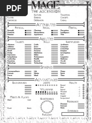 Mage 1 Ascension Character Sheet Editable Pdf Leisure Activities Role Playing Games