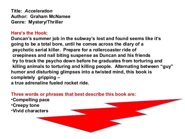 Acceleration graham mcnamee characters. Write the summary of the book that you read. YA thriller mystery suspense Rating. Acceleration is about seventeen year old Duncan working in Torontos subway lost and found finding a psycho serial killers diary.