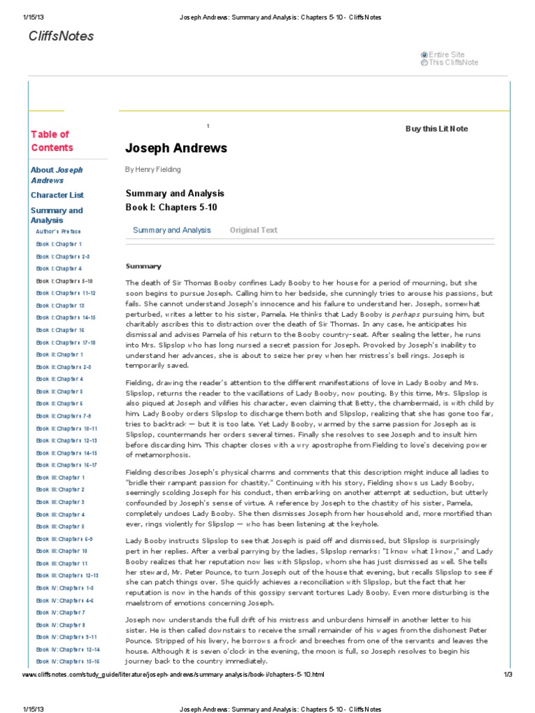 Joseph Andrews Summary And Analysis Chapters 5 10 Cliffsnotes Pdf
