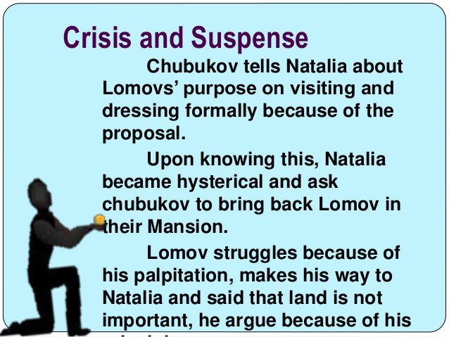 So he decided to propose a girl in the neighbourhood. Proposal b Chubukov loved Lomov like his own Answer. Natalya is talkative and short-tempered.