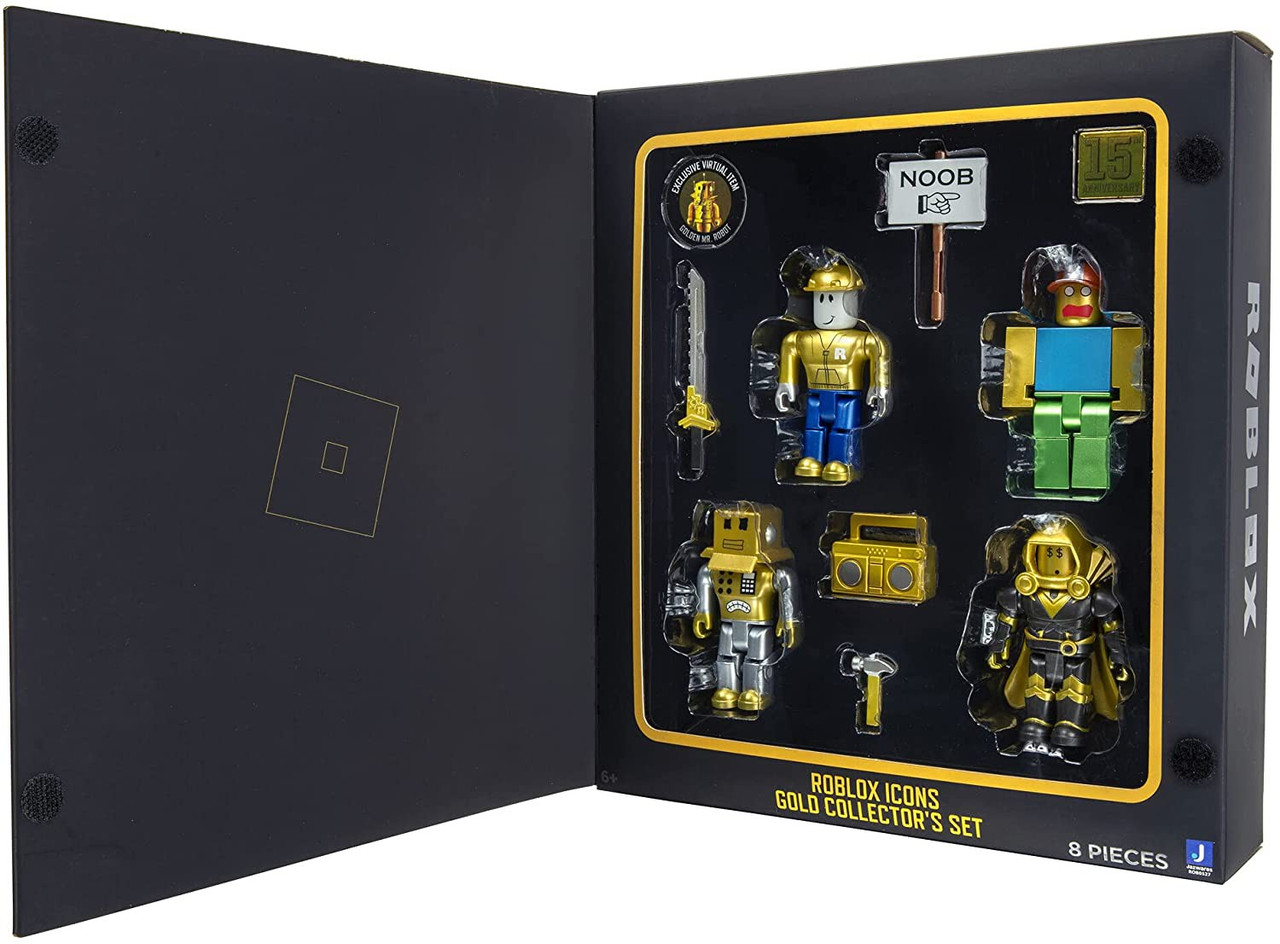 Roblox 15th Anniversary Roblox Icons Gold Collectors Set Exclusive 3 Action Figure 4 Pack Builderman Mr Robot Classic Noob Dominus Aureus Dude Jazwares Toywiz
