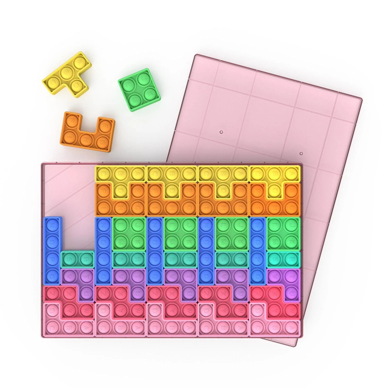 Rainbow Popet Block Puzzle Game Board Fidget Toys Parent Child Push Bubble Popper Fidget Sensory Squeeze Toys For Kids Adults Fidget Roller Aliexpress