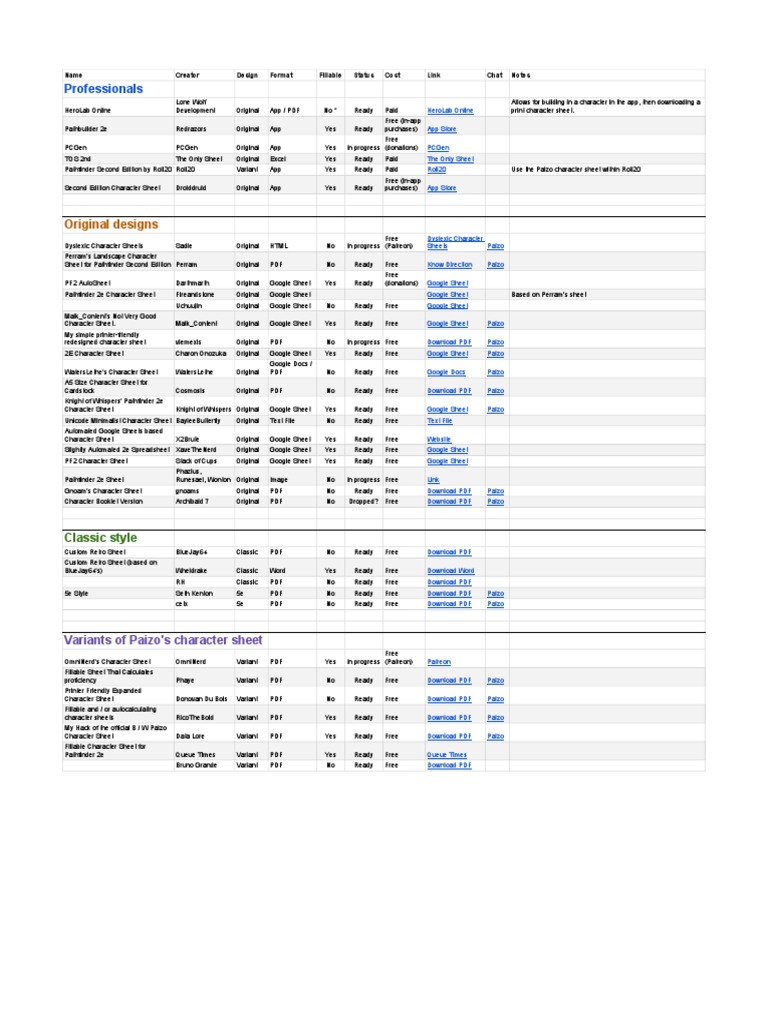 List Of Alternative Character Sheets For Pathfinder 2nd Edition Pdfcoffee Com