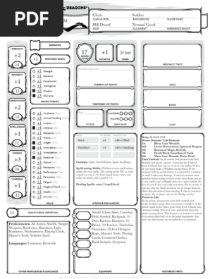 D D 5e Character Sheet Rowley Therkhelm Hill Dwarf Life Cleric Pdf Tsr Company Games Fantasy Role Playing Games