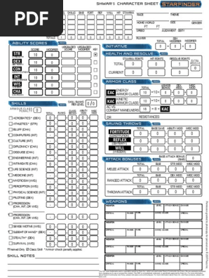 Starfinder Super Character Sheet Pdf Gaming Role Playing Games