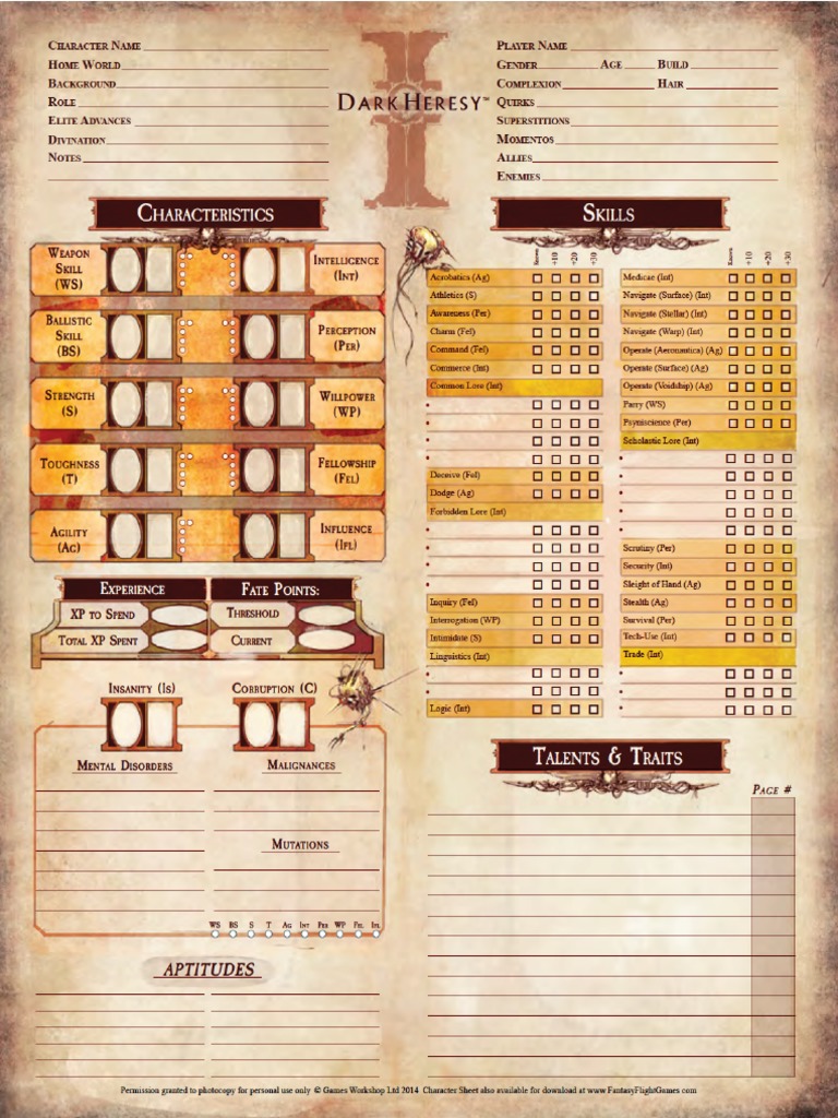 Dark Heresy 2nd Edition Fillable Character Sheet Darkheresy