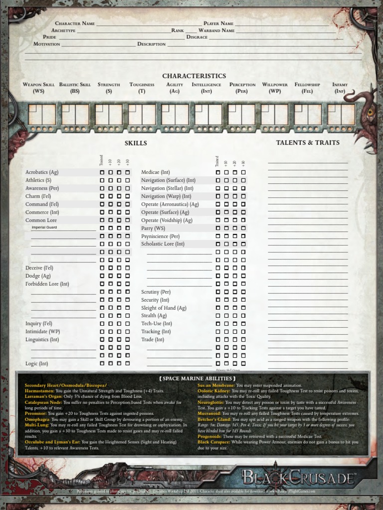 Warhammer 40 000 Rogue Trader Character Sheet Editable