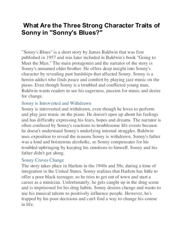 Doc What Are The Three Strong Character Traits Of Sonny In Sonny S Blues Ghassan Alhasnawi Academia Edu