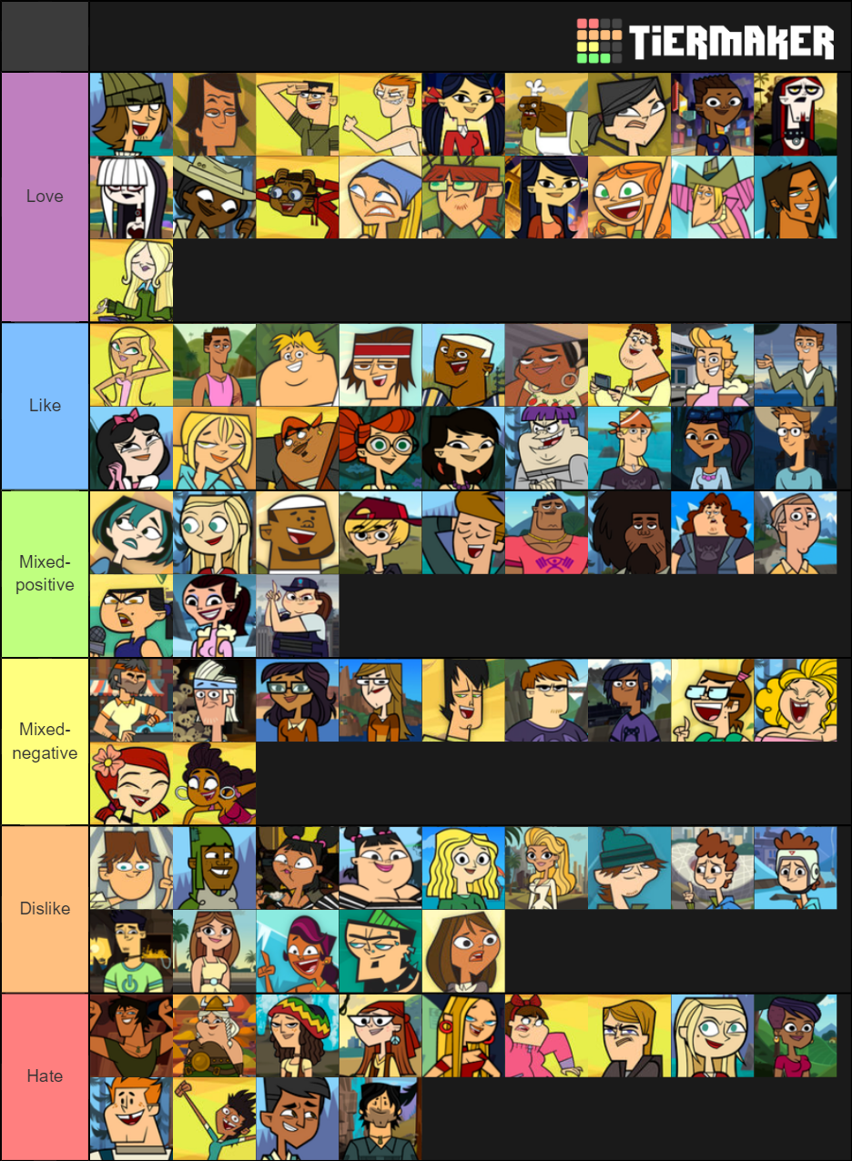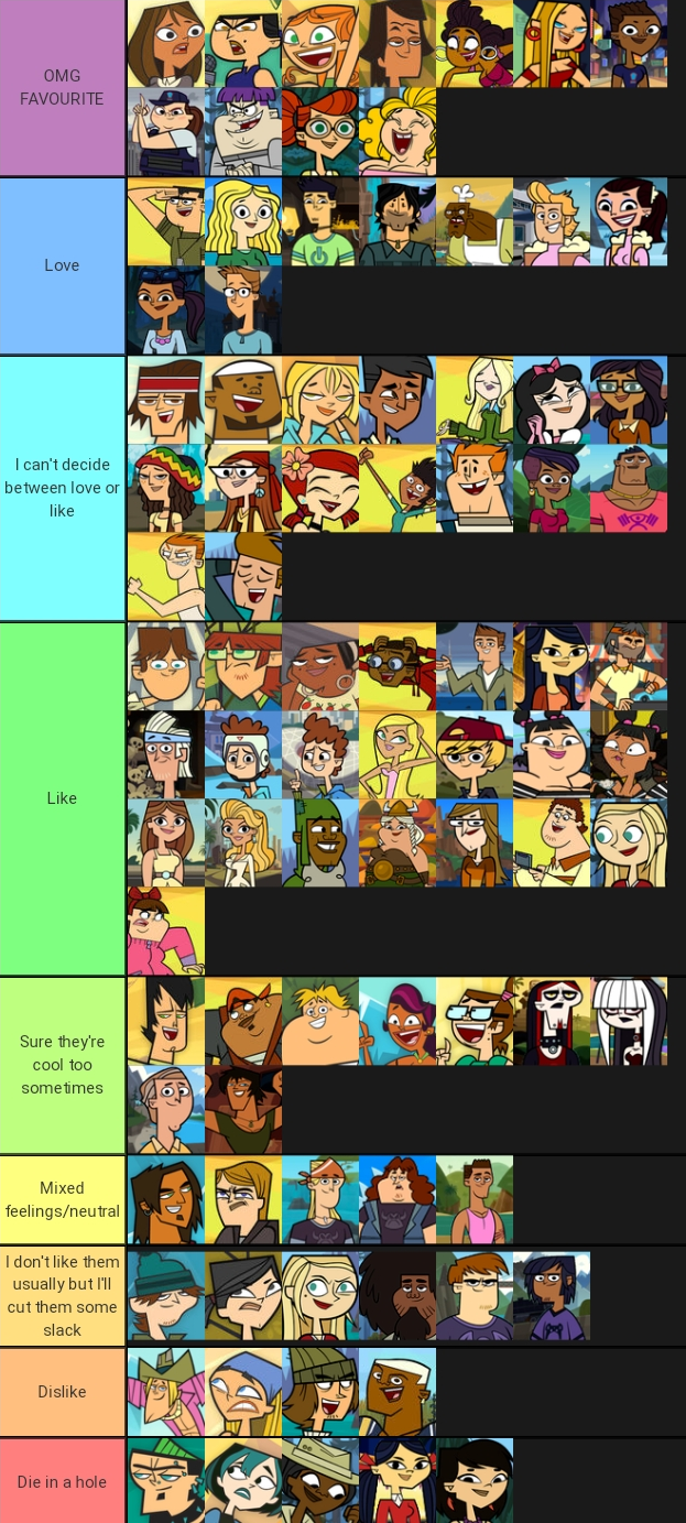 Dont get me wrong live the unpopular opinions they just make me feel a type of way. Edit the label text in each row. The total drama character tier list.
