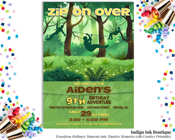 Zipline Birthday Invitation Personalized Digital Download Etsy