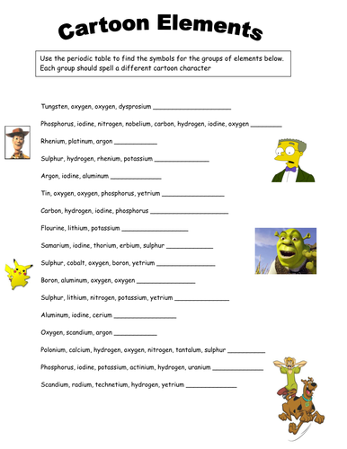 Periodic Table Cartoon Characters Worksheet