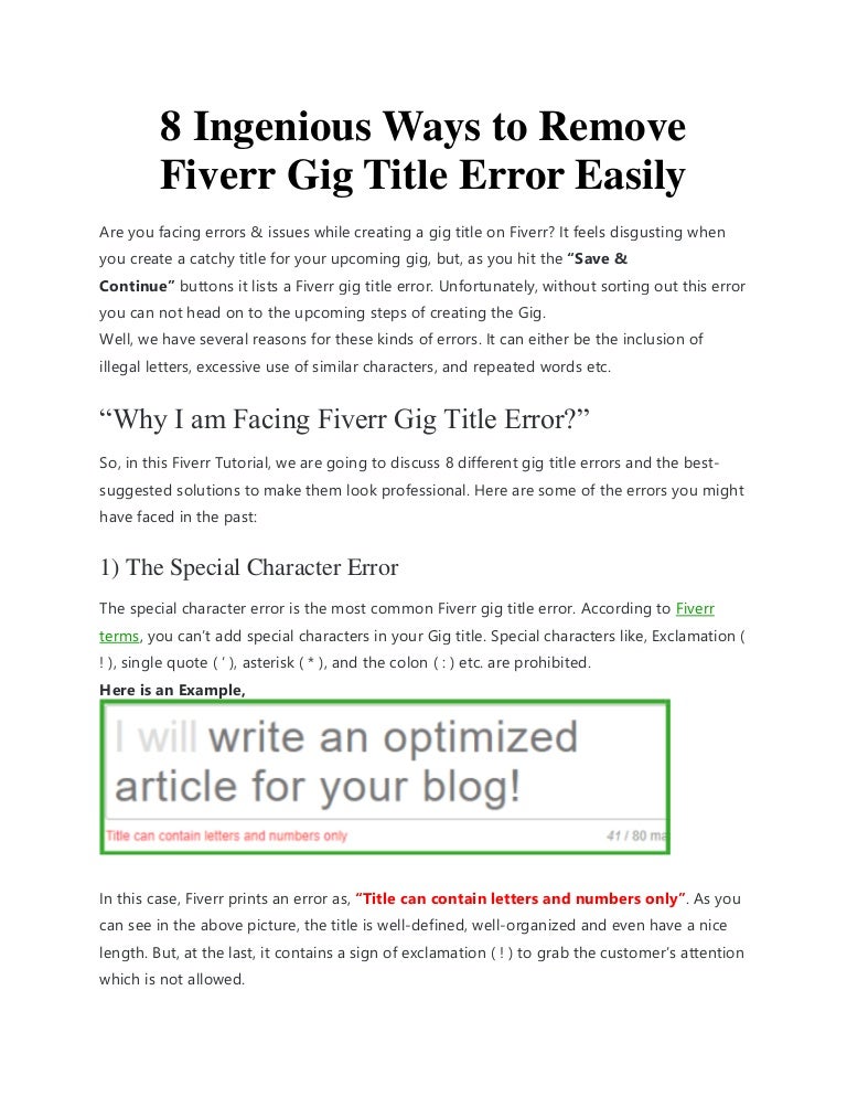 Help 8 Ingenious Ways To Remove Fiverr Gig Title Error Easily
