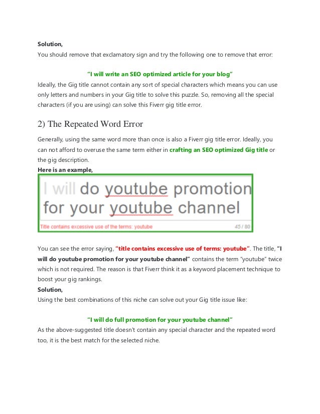 Description Contains Excessive Use Of The Terms Fiverr Fiverr Gig Error Solve 100 Youtube