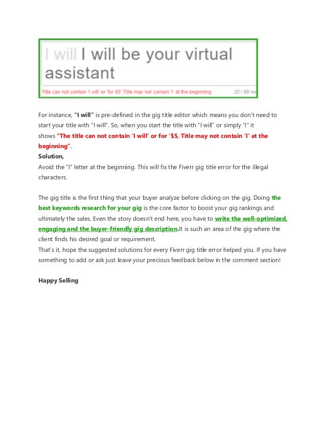 Gig Title Contains Illegal Characters Fiverr