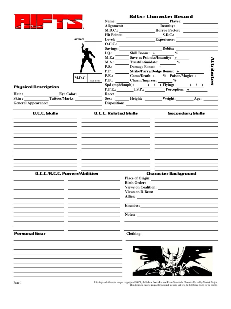 Fillable Palladium Megaverse Character Sheet By Madmanmike On Deviantart