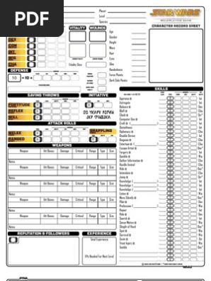 The most secure digital platform to get legally binding electronically signed documents in just a few seconds. Star wars fillable Character sheet - Download as PDF File pdf Text File txt or read online. Version 14 incorporates the changes I am aware of from the Revised rulebook.