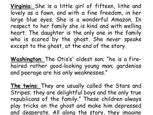 Virginia Otis is the only daughter of Mr. He was totally materialistic rational and ruthless in his attitude.