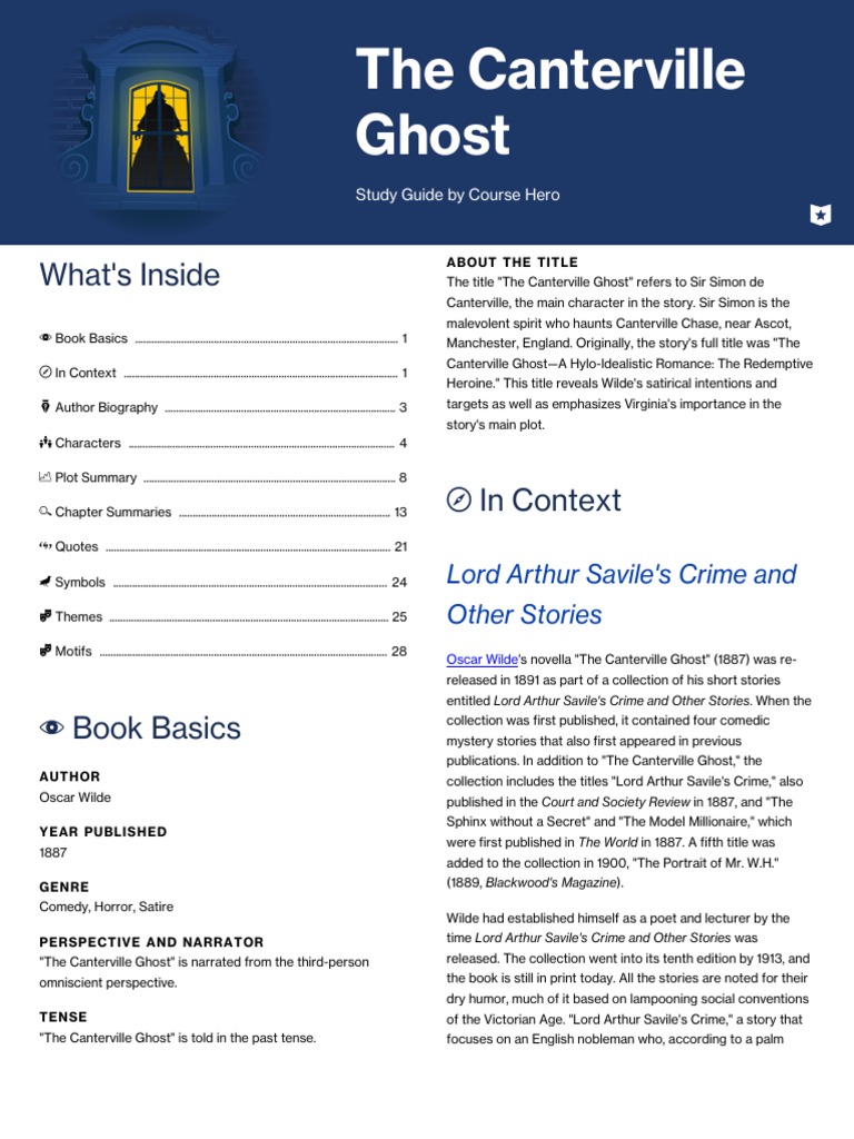 The Canterville Class 11 63 The Canterville Ghost Oscar Wilde Chapter 1 1 What Is The