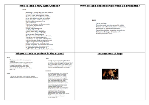 Othello Act 1 Scene 1 Iago Analysis Teaching Resources