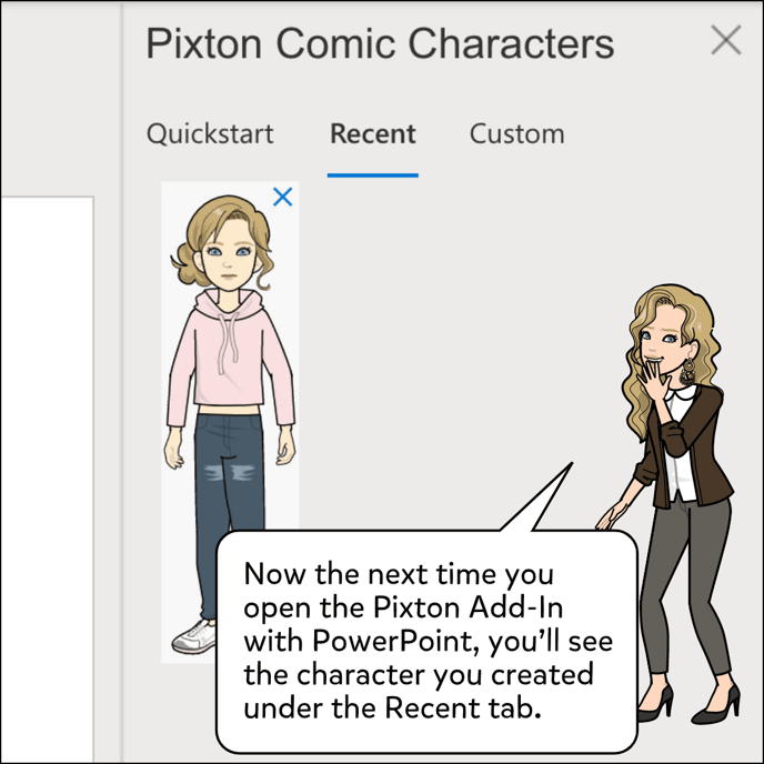 You can actually make your slides come to life by adding your own customized comic characters to PowerPoint using the Pixton add -in. Now you have a chance to start to experiment with Pixton. For most comics and stories your characters wont need to change outfits.