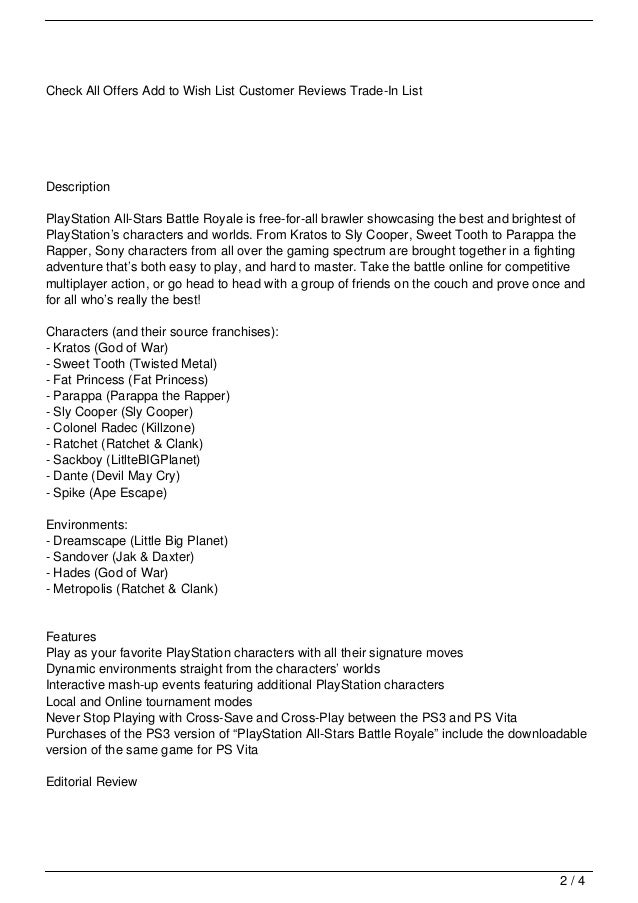 WaluigitheGreat 1 year ago 1. Some are obvious choices and are expected to be announced later this year while. PlayStation All-Stars Battle Royale is a fighting game similar to the style of Nintendos Super Smash Bros.