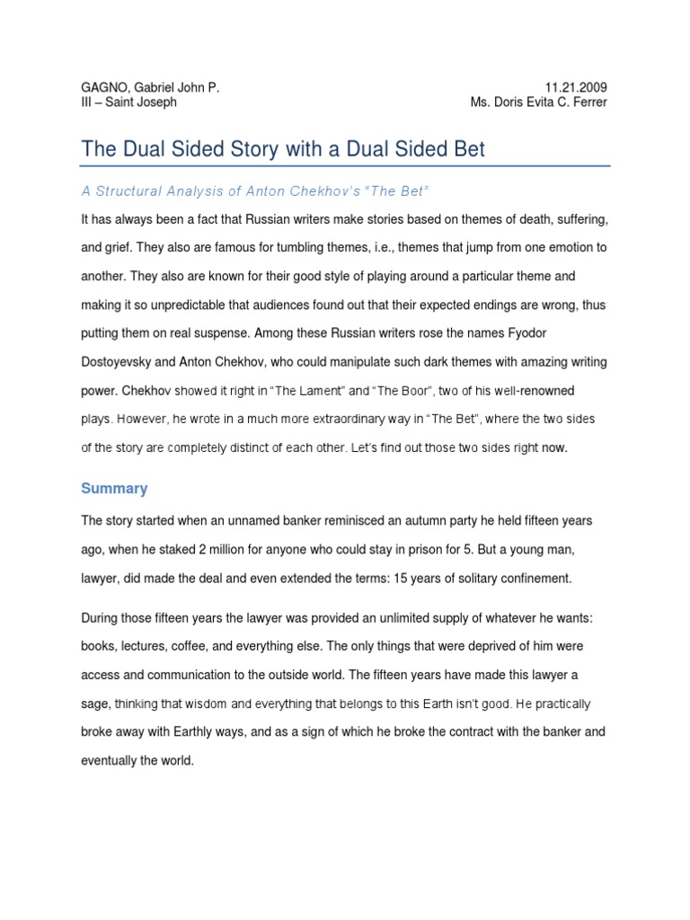 Analysis Of The Bet By Anton Chekhov Pdf Document