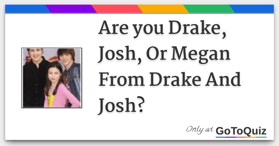Take this quiz to see which Drake and Josh character you are. He has many girlfriends throughout the series but he claims that he doesnt like half of the girl he dates. You have a temper but at the last moment you always come through for people and do a nice thing.